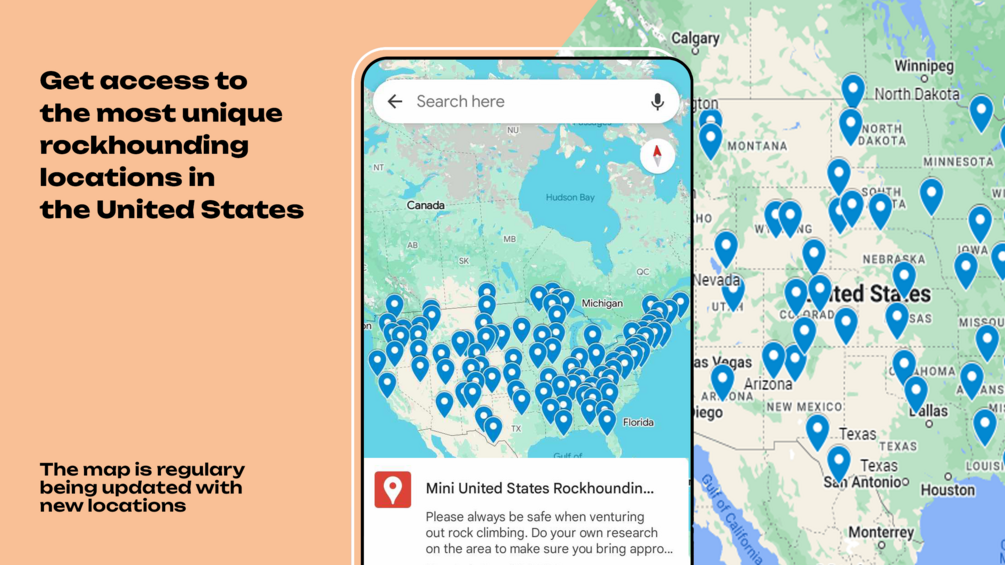 - Google Maps Pins: Detailed locations of rockhounding sites across various states.